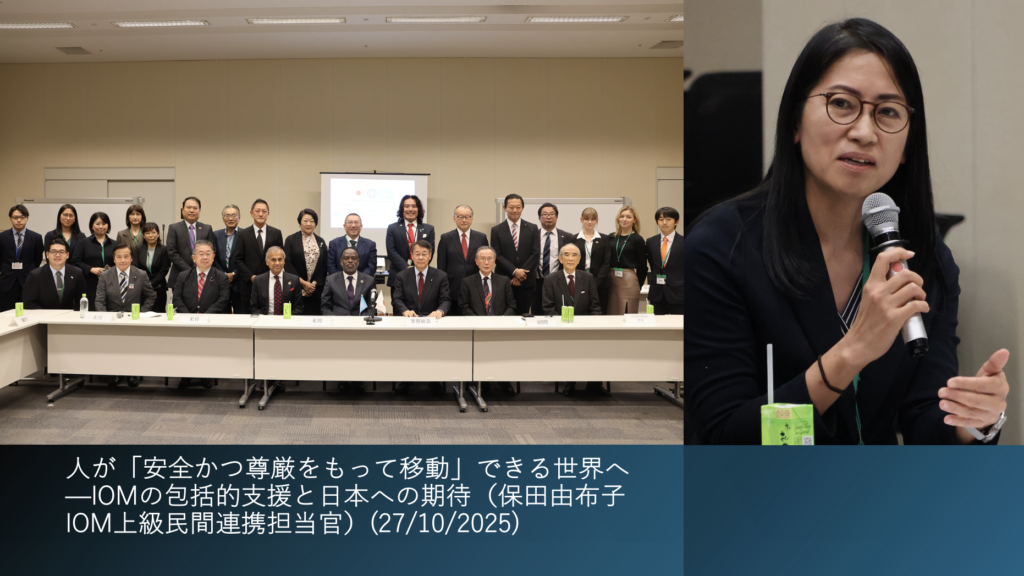 人が「安全かつ尊厳をもって移動」できる世界へ—IOMの包括的支援と日本への期待(保田由布子 IOM上級民間連携担当官)(27/10/2025)