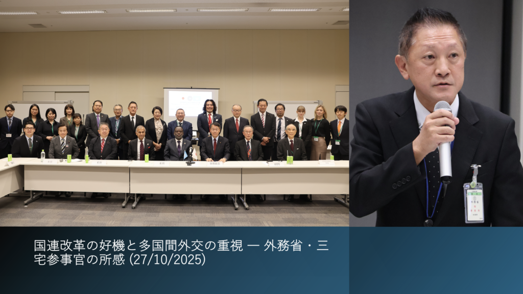 国連改革の好機と多国間外交の重視 ― 外務省・三宅参事官の所感 (27/10/2025)