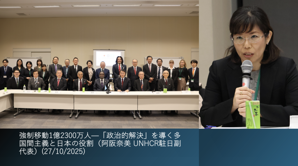 強制移動1億2300万人—「政治的解決」を導く多国間主義と日本の役割(阿阪奈美 UNHCR駐日副代表)(27/10/2025)