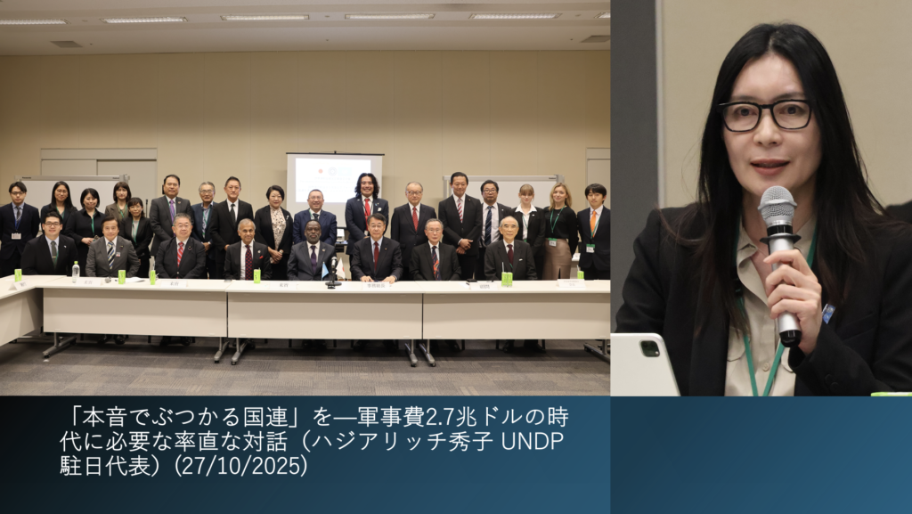 「本音でぶつかる国連」を—軍事費2.7兆ドルの時代に必要な率直な対話(ハジアリッチ秀子 UNDP駐日代表)(27/10/2025)自動下書き