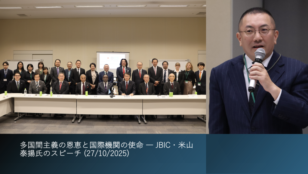 多国間主義の恩恵と国際機関の使命 ― JBIC・米山泰揚氏のスピーチ (27/10/2025)