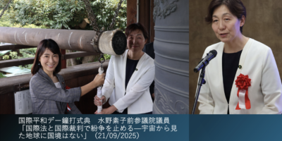 国際平和デー鐘打式典 水野素子前参議院議員「国際法と国際裁判で紛争を止める—宇宙から見た地球に国境はない」(21/09/2025)