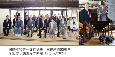 2025年9月21日、東京・大本山護国寺において「国際平和デー鐘打式典」が開催された。国連創設80周年を迎える今年の式典には、国会議員や地方…