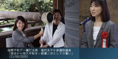国際平和デー鐘打式典 塩村あやか参議院議員「国会から恒久平和を—被爆二世としての誓い」(21/09/2025)