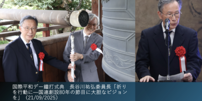 国際平和デー鐘打式典 長谷川祐弘委員長「祈りを行動に—国連創設80年の節目に大胆なビジョンを」(21/09/2025)
